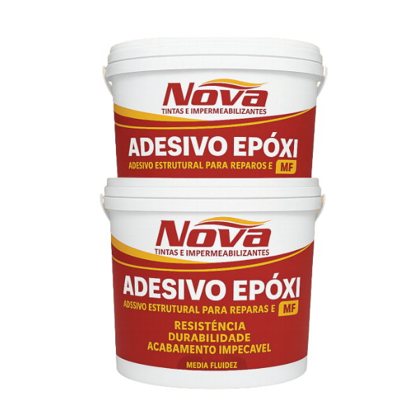 Adesivo Epóxi MF Nova Tintas é um adesivo estrutural de média fluidez e pega normal, bicomponente que possui alta aderência e de fácil aplicação. Ideal para superfícies com inclinações diversas. Poder ser utilizado para colagem de concreto, microconcreto, grautes, aço, alumínio, fibrocimento, mármore, madeira, cerâmica e vidro.