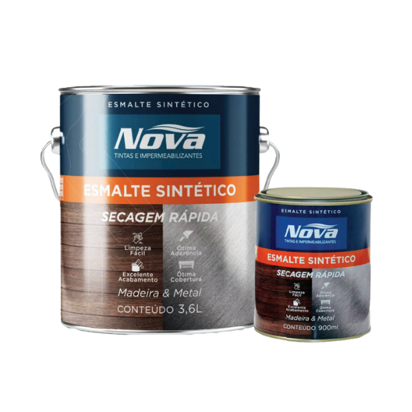 O Esmalte Sintético Nova Tintas é uma solução premium para superfícies que exigem alta resistência e acabamento impecável. Com durabilidade superior, proteção contra umidade, oxidação e ação de intempéries, é ideal para metais, madeiras e alvenaria em áreas internas e externas. Disponível em acabamentos brilhante e acetinado, oferece secagem